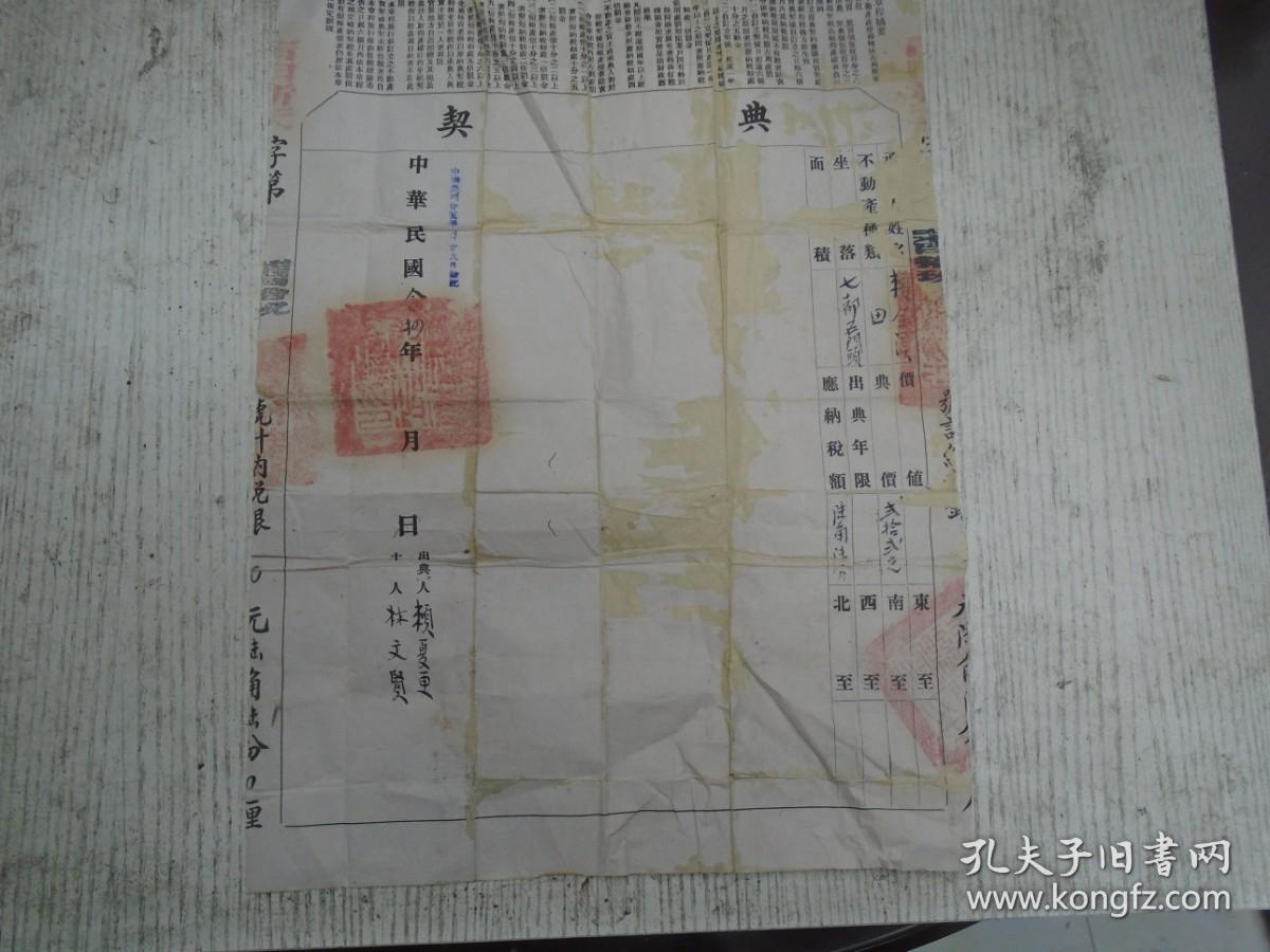 民国念肆年/民国廿五年四月廿九验讫《典契》出典人赖夏更/中人林文贤/承典人赖全溪/不动产种类田/坐落七都石门頭/青田新天字第