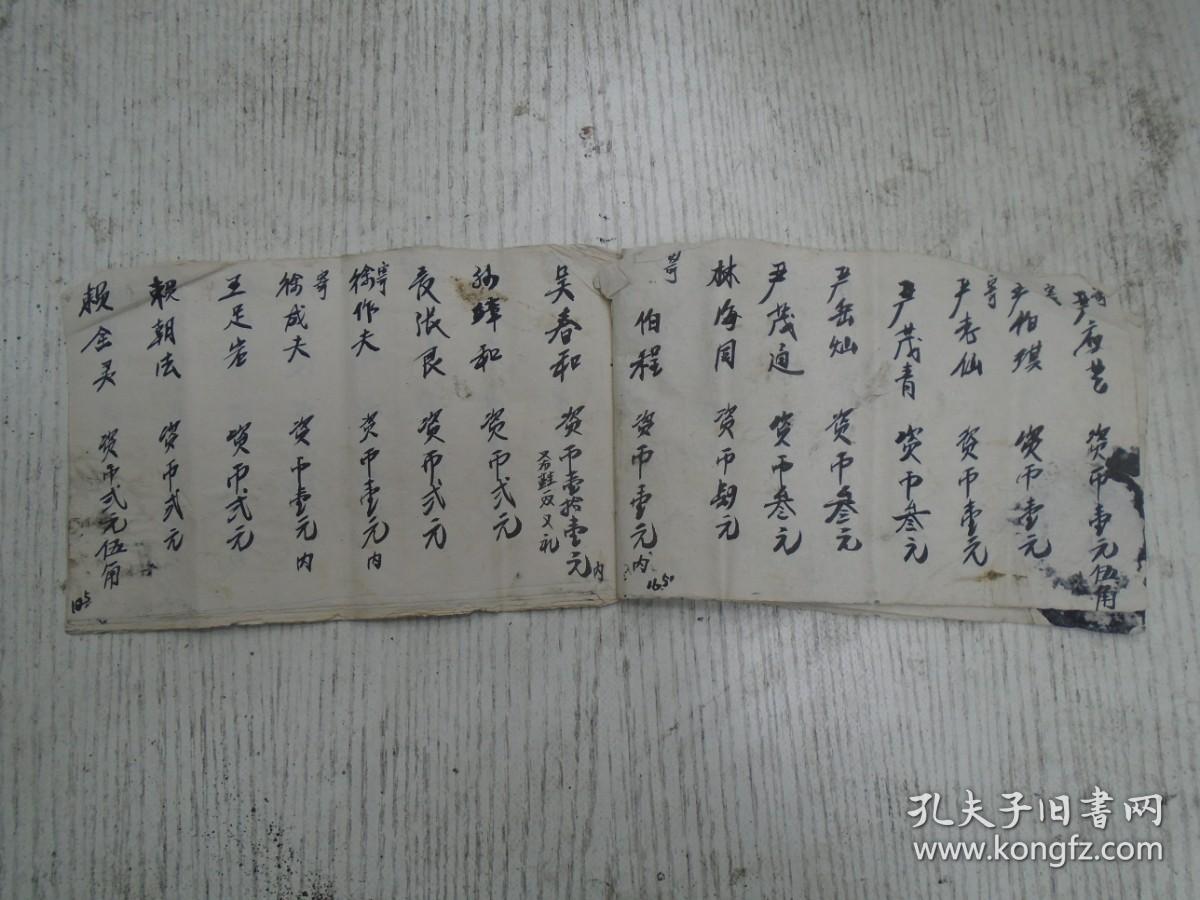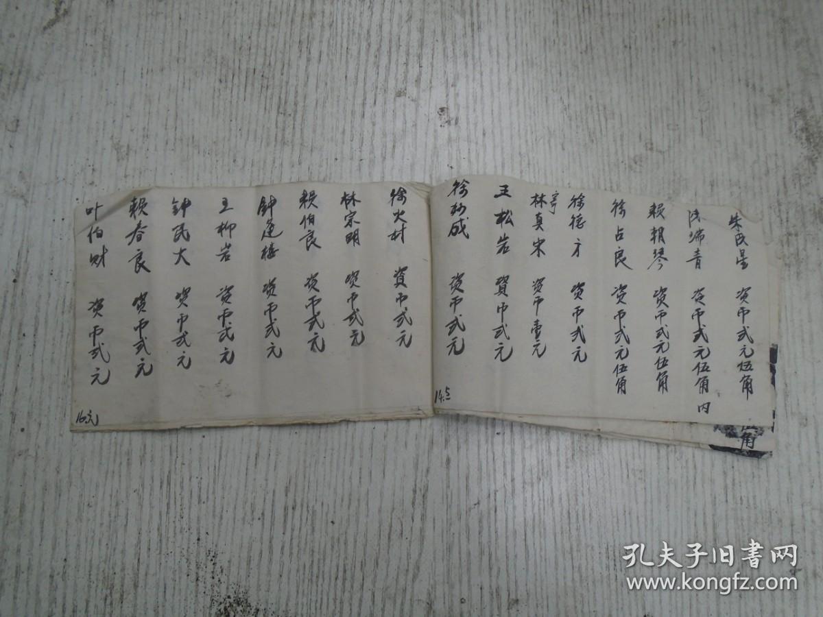 一九六六年二月廿一日/赖全溪《人成簿(人情簿)》严日…贺币柒元礼/吴连…伍元内存/孙乃…资洋柒元又礼内存/吴先…贺币弍元又鞋一双